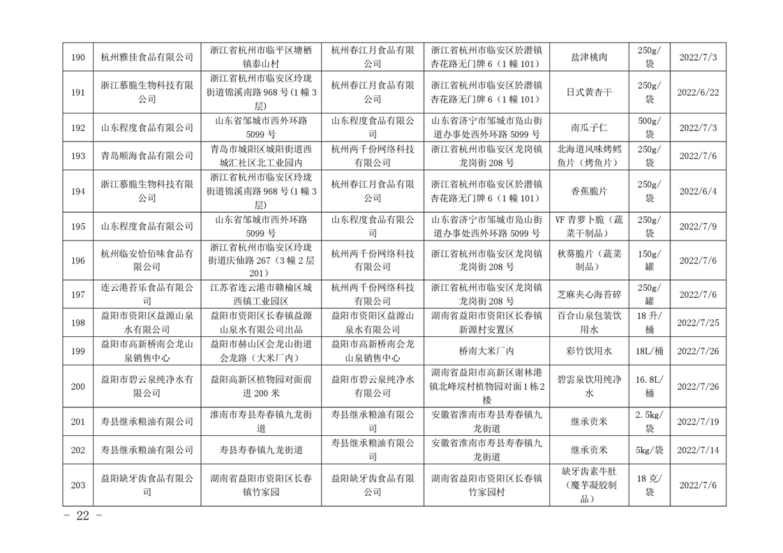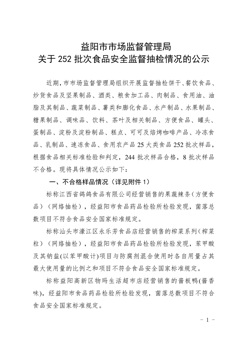 | 关于2022年8月份252批次食品安全监督抽检情况的公示 |