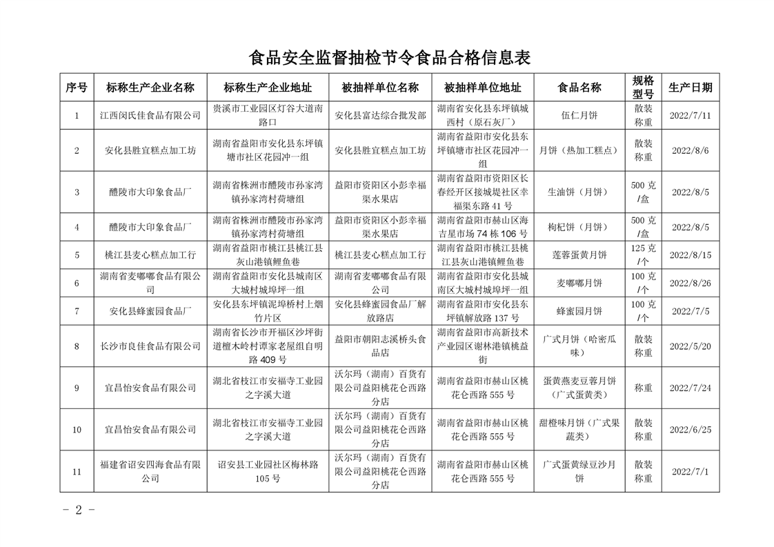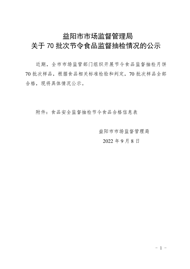| 关于2022年9月份70批次节令食品监督抽检情况的公示 |