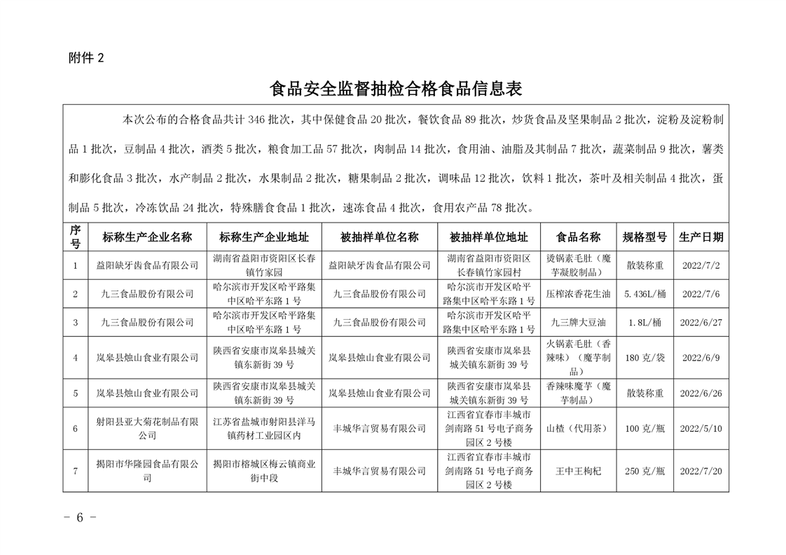 | 关于2022年9月份356批次食品安全监督抽检情况的公示 |