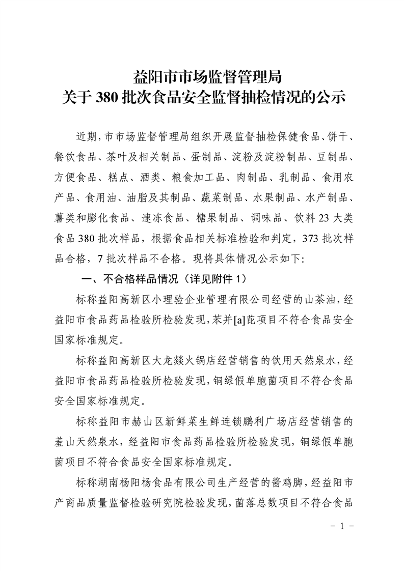 | 关于2022年10月份380批次食品安全监督抽检情况的公示 |