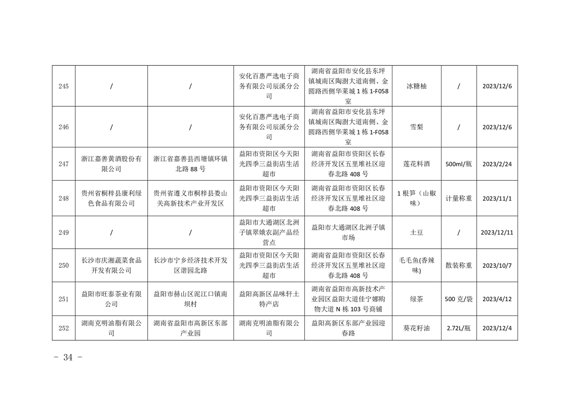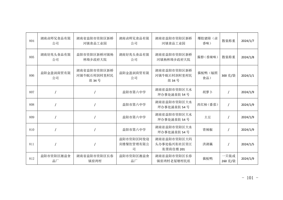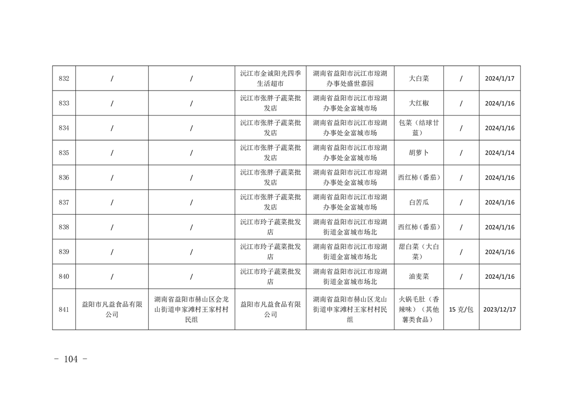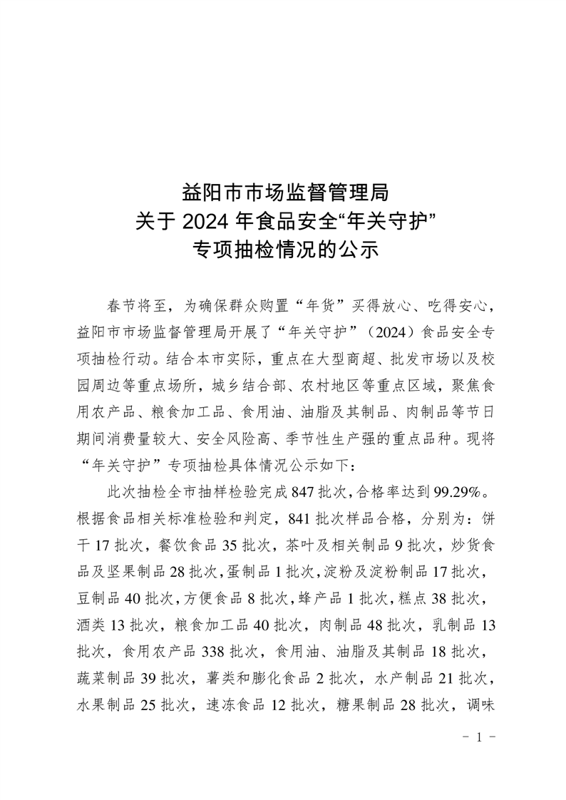 | 关于2024年食品安全“年关守护” 专项抽检情况的公示 |