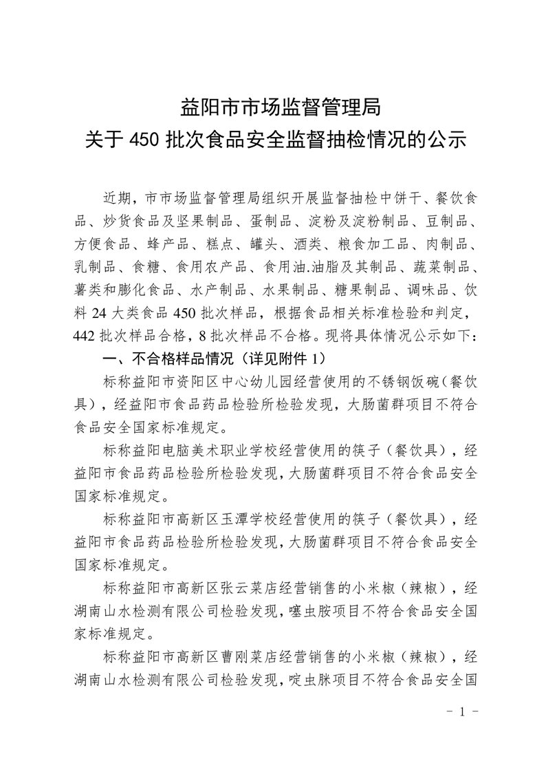 | 关于450批次食品安全监督抽检情况的公示(2024年04月份) |