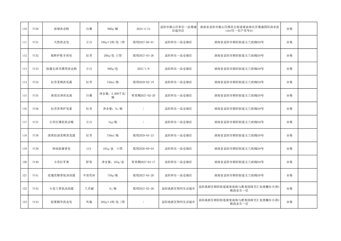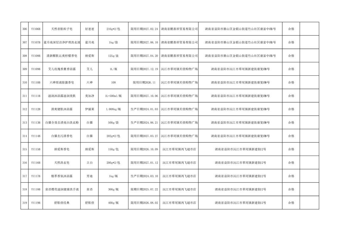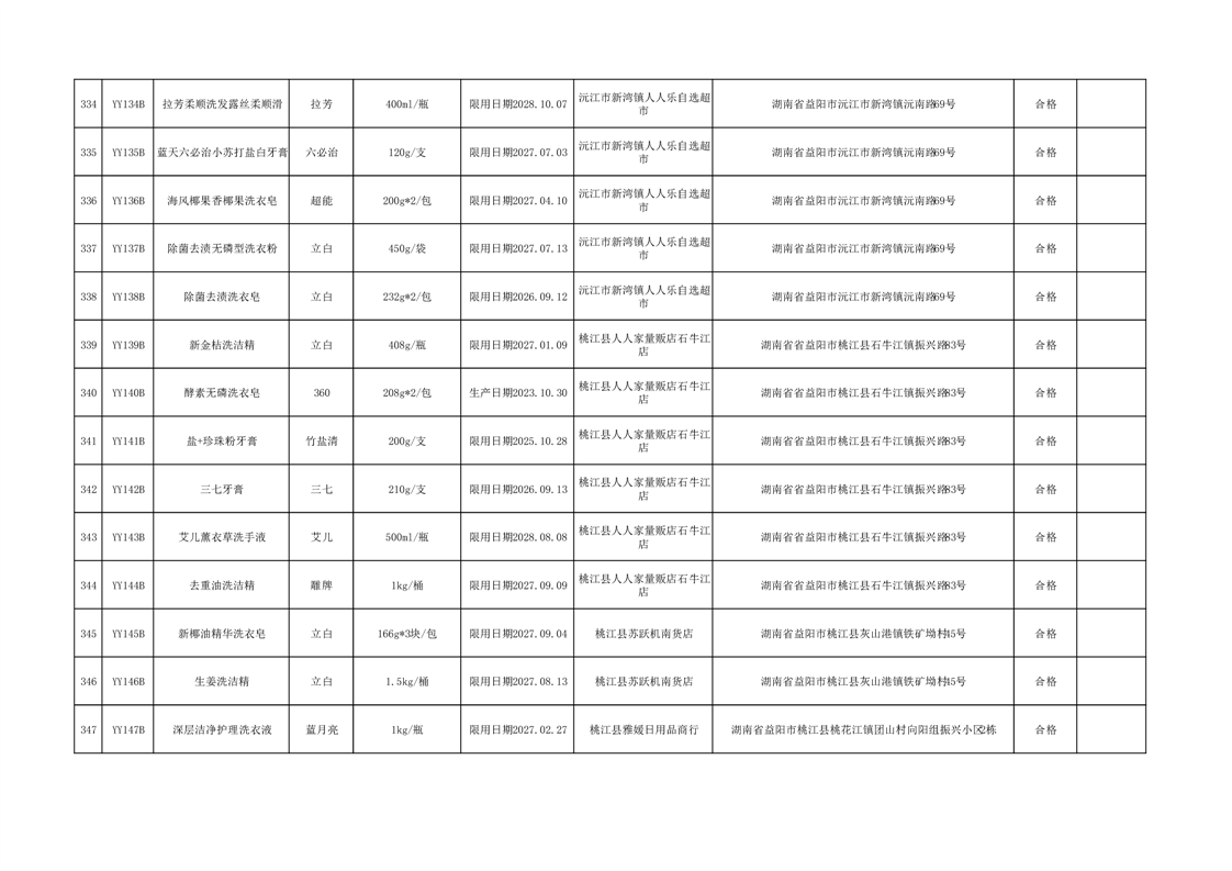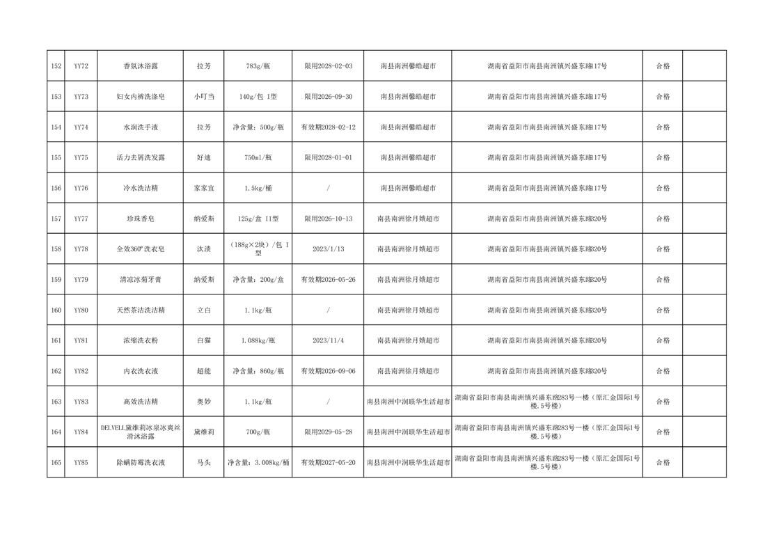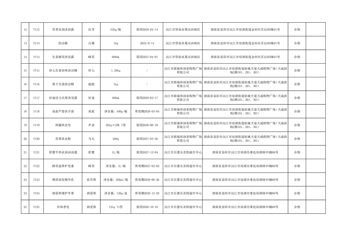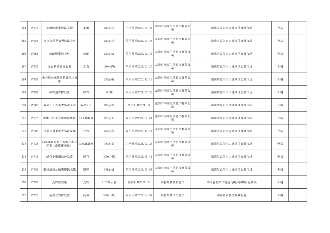 | 2024年益阳市洗涤用品专项抽检结果公示(12月份) |
