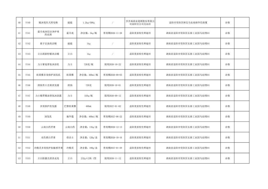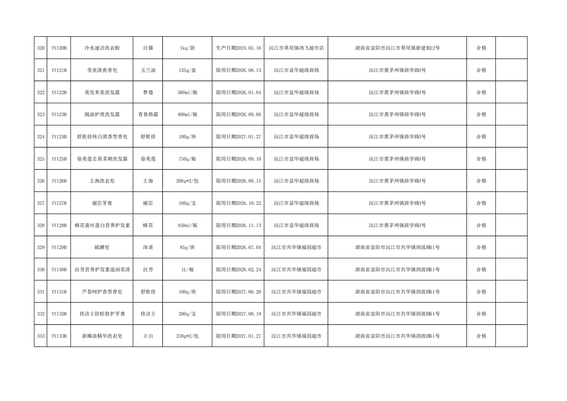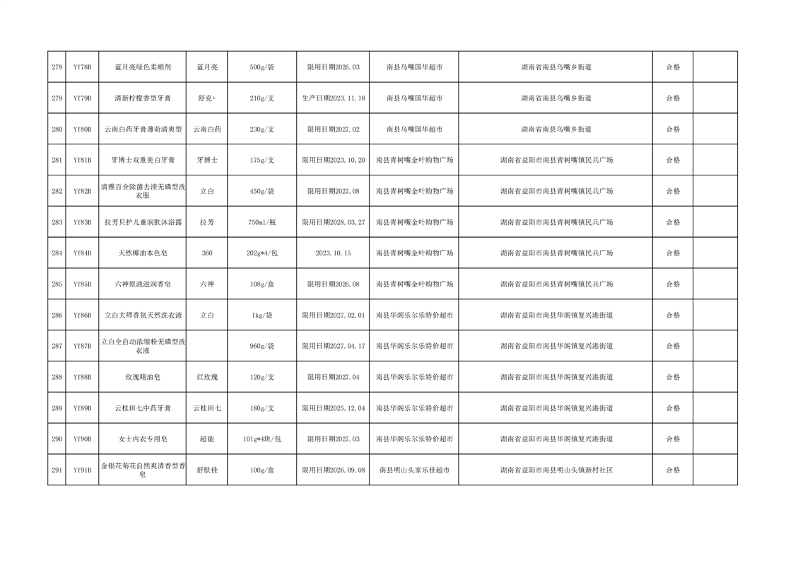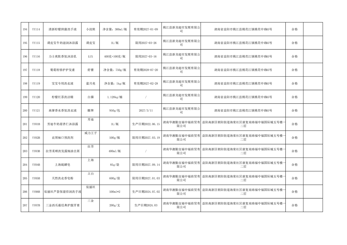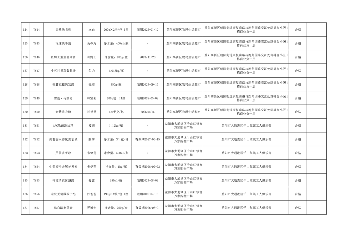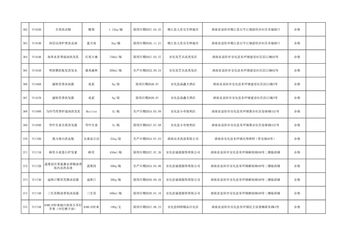| 2024年益阳市洗涤用品专项抽检结果公示(12月份) |