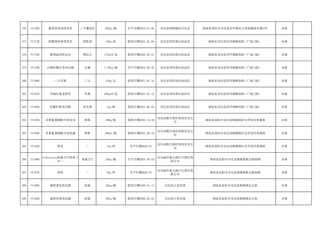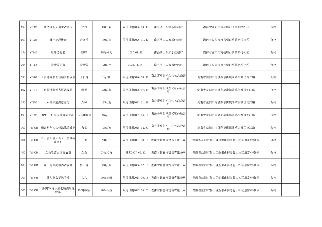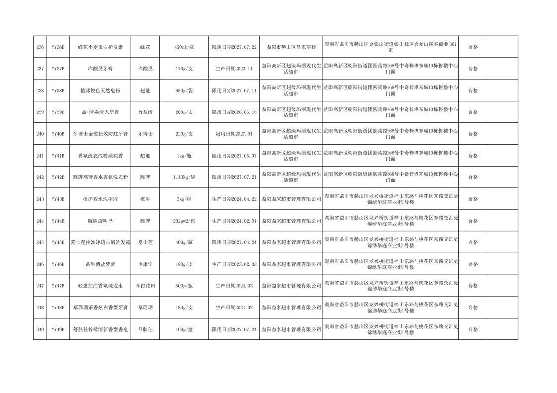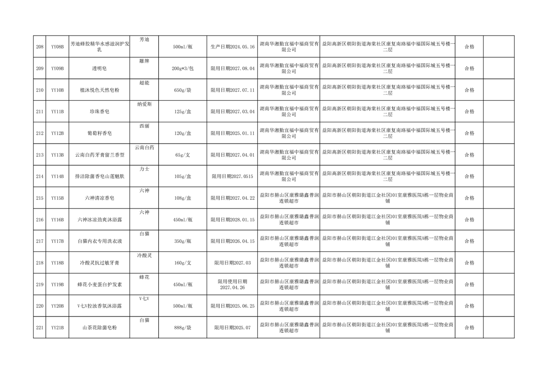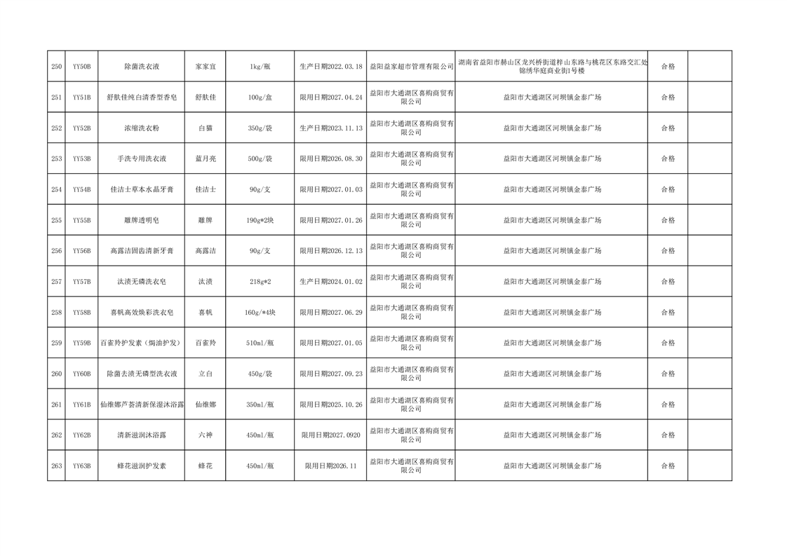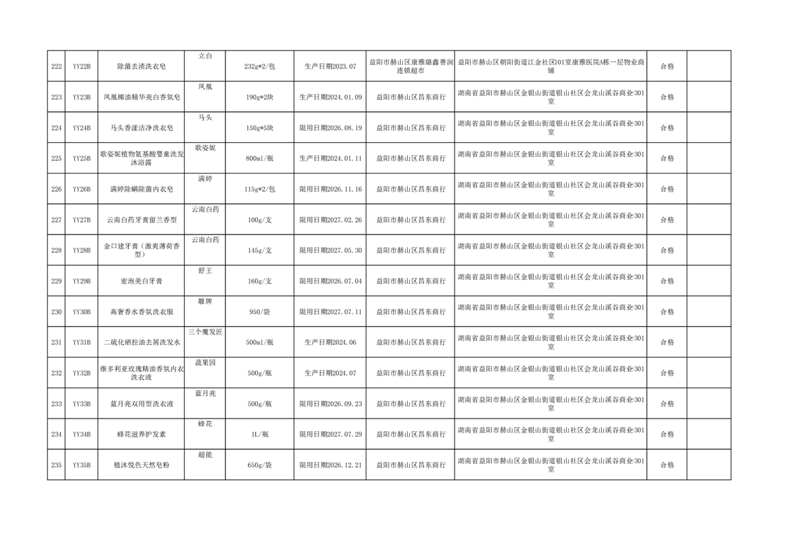 | 2024年益阳市洗涤用品专项抽检结果公示(12月份) |