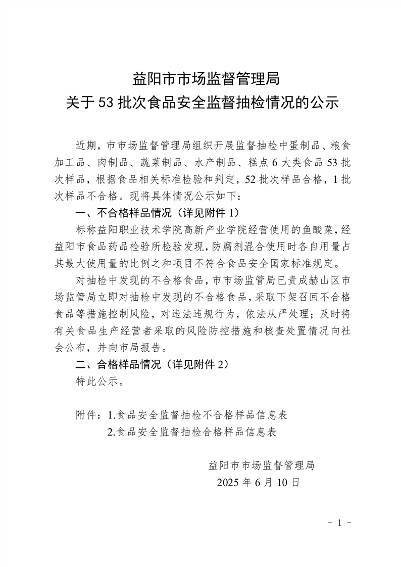 | 关于53批次食品安全监督抽检情况的公示(2025年05月份) |