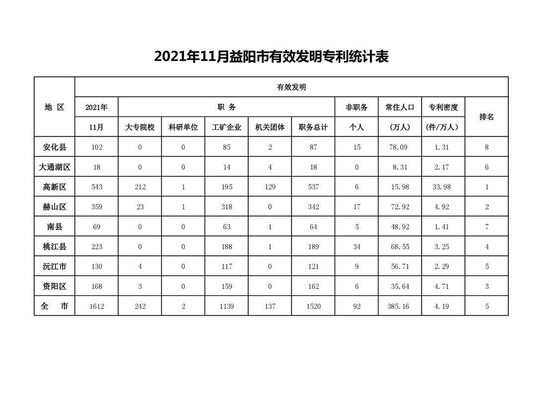 | 2021年11月益阳市有效发明专利统计表 |