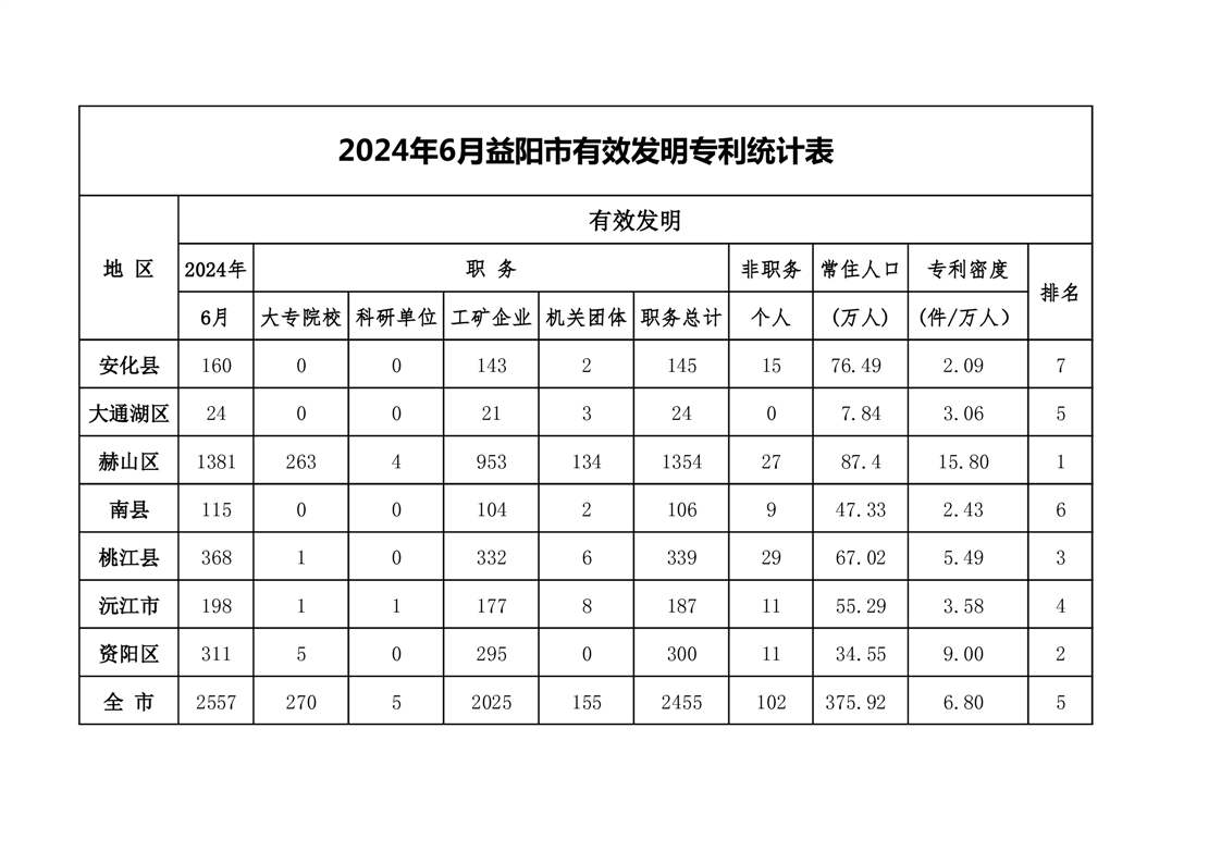 | 2024年06月益阳市有效发明专利统计表 |