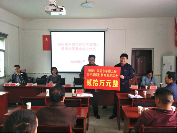 时任团市委书记付振南作为代表向目南村教育基金会捐赠20万元