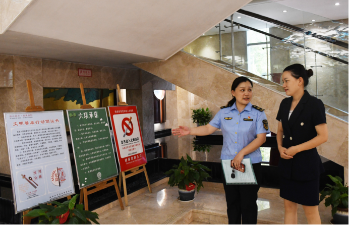 同时,工作人员查看了酒店餐厅、后厨等场所环境卫生及库房食品储藏等情况。指导餐饮经营者在餐厅摆放文明餐桌桌牌,配备公筷公勺公夹,倡导“光盘行动”。督促餐饮经营者建立消费提醒、提示制度,指导其创新经营服务模式,改进宴席和菜单设计,优化备料制作流程,合理调整菜品分量,提供“按位供餐”“半份、半价”“小份、适价”等服务,引导消费者节约用餐。