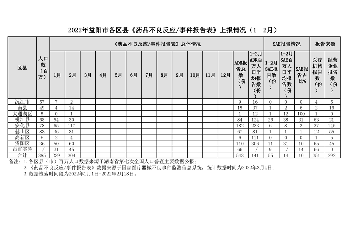 | 【监测进度】2022年益阳市各区县《药品不良反应/事件报告表》上报情况(1—2月) |