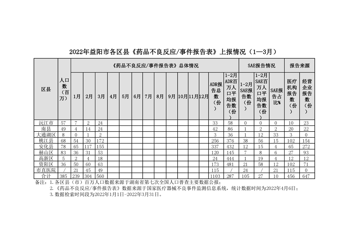 | 【监测进度】2022年益阳市各区县《药品不良反应/事件报告表》上报情况(1—3月) |