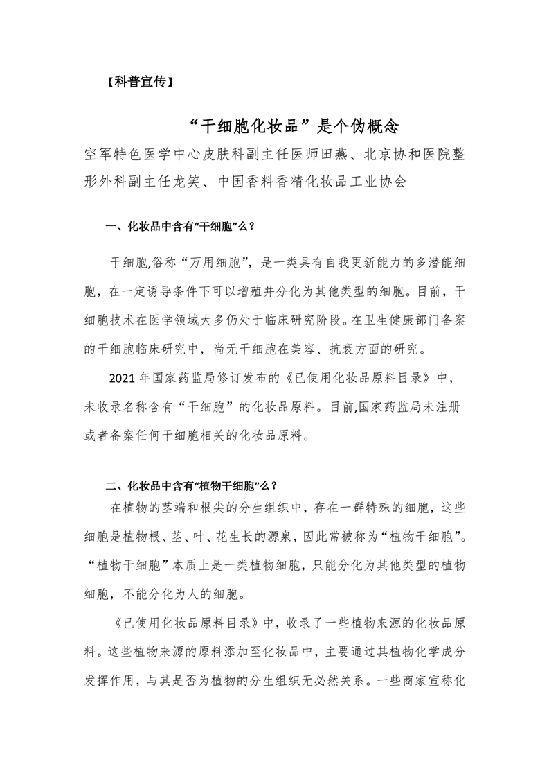 | 【科普宣传】“干细胞化妆品”是个伪概念 |