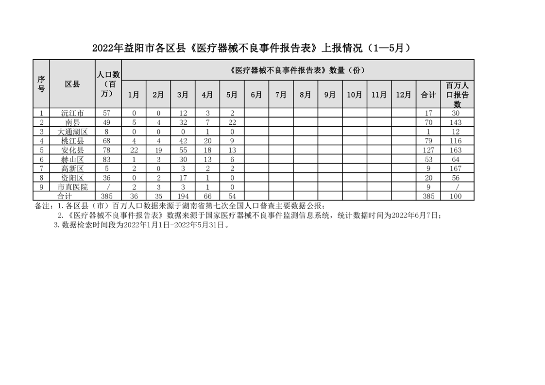 | 【监测进度】2022年益阳市各区县《医疗器械不良事件报告表》上报情况(1—5月) |