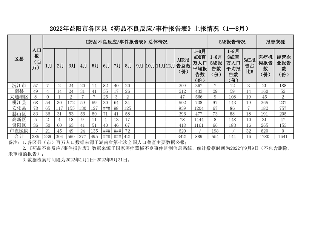 | 【监测进度】2022年益阳市各区县《药品不良反应事件报告表》上报情况(1—8月) |
