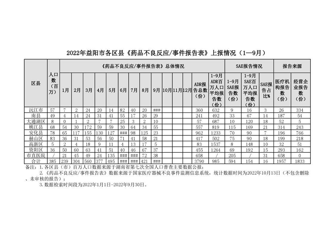 | 【监测进度】2022年益阳市各区县《药品不良反应事件报告表》上报情况(1—9月) |