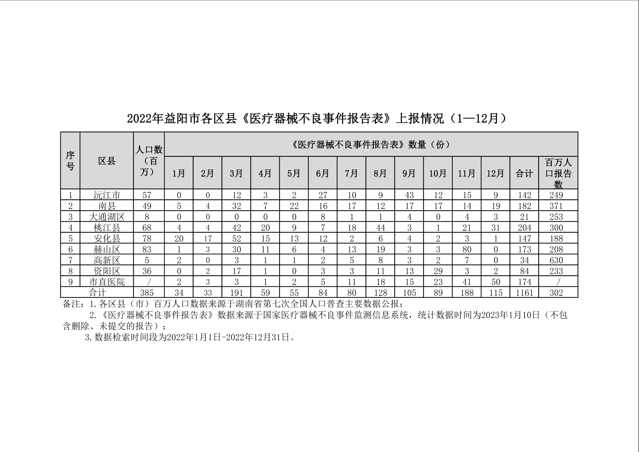 | 2022年益阳市各区县《医疗器械不良事件报告表》上报情况(1—12月) |