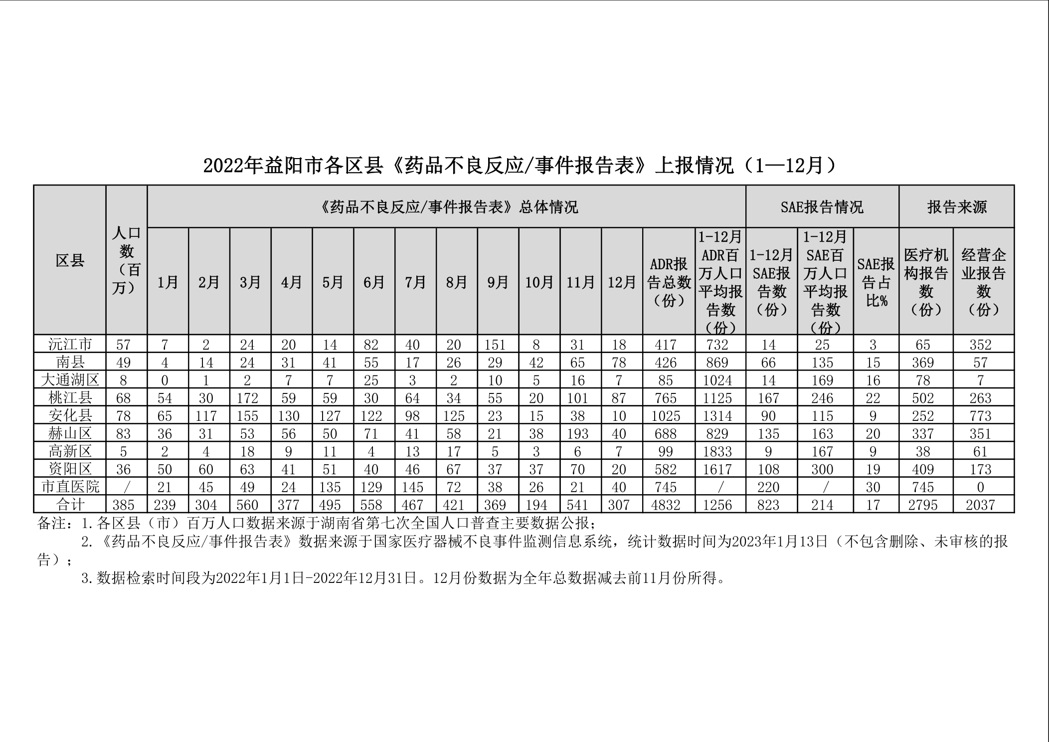 | 2022年益阳市各区县《药品不良反应事件报告表》上报情况(1—12月) |
