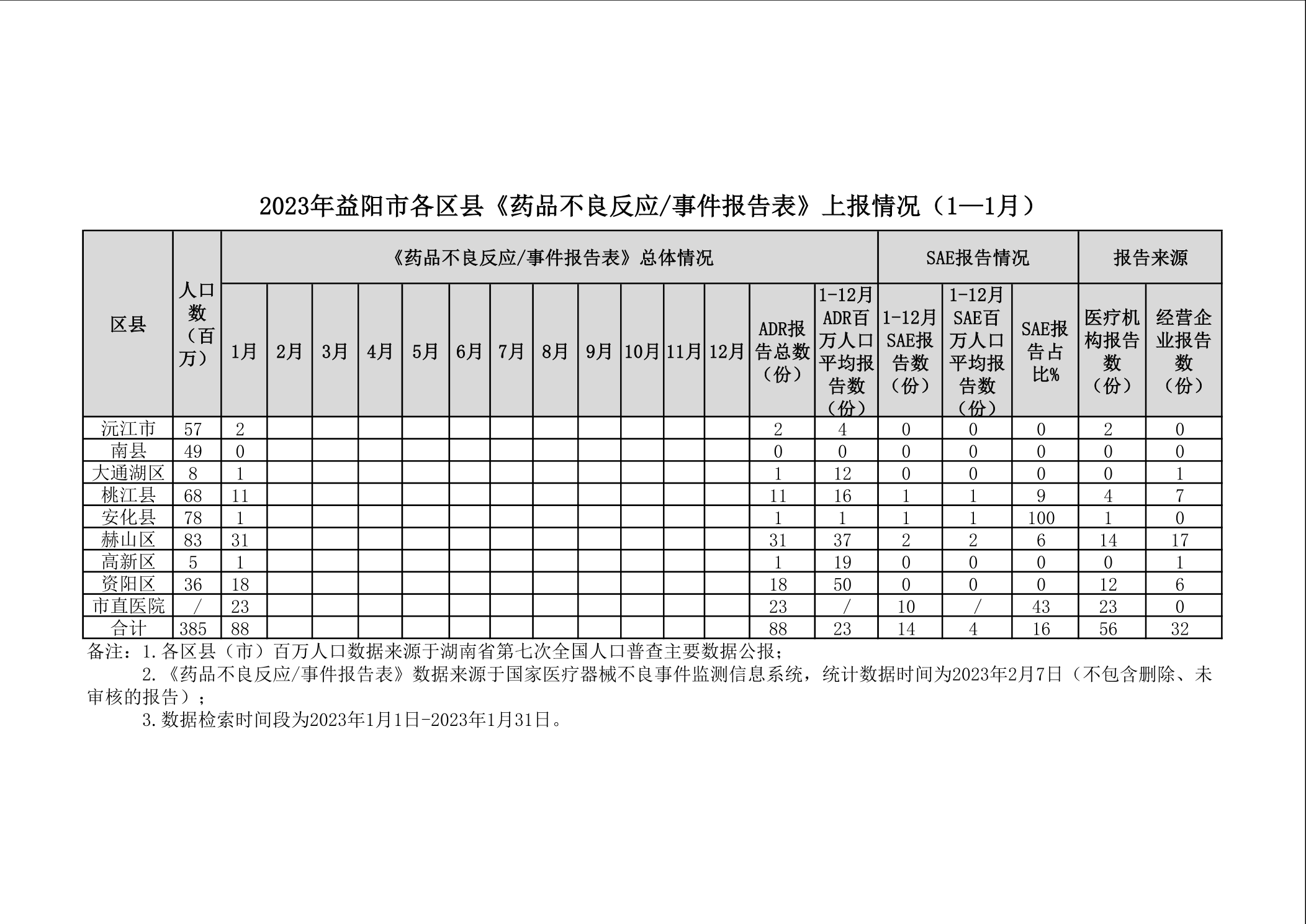 | 2023年益阳市各区县《药品不良反应事件报告表》上报情况(1—1月) |