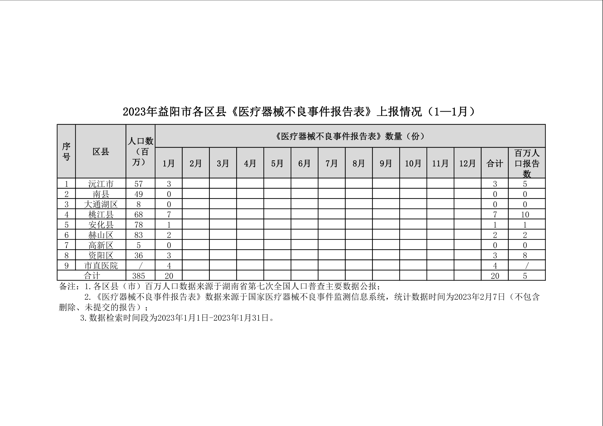 | 2023年益阳市各区县《医疗器械不良事件报告表》上报情况(1—1月) |