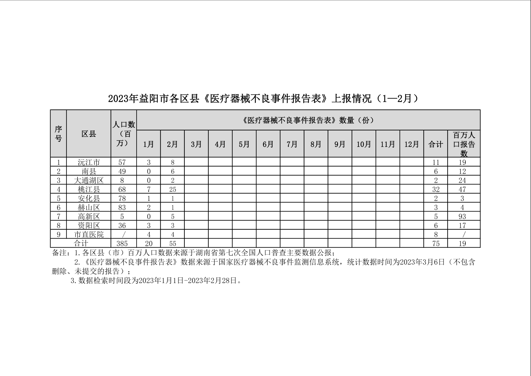 | 2023年益阳市各区县《医疗器械不良事件报告表》上报情况(1—2月) |