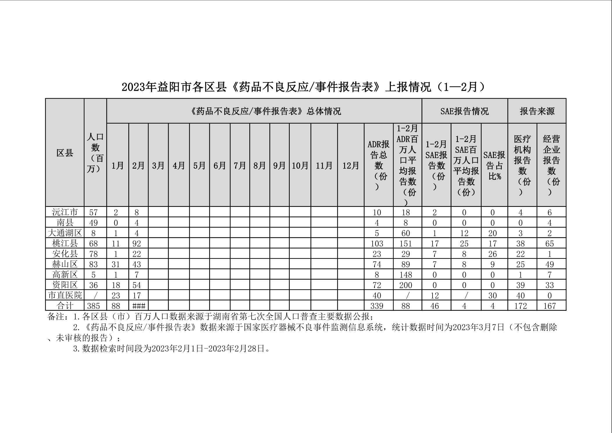 | 2023年益阳市各区县《药品不良反应事件报告表》上报情况(1—2月) |