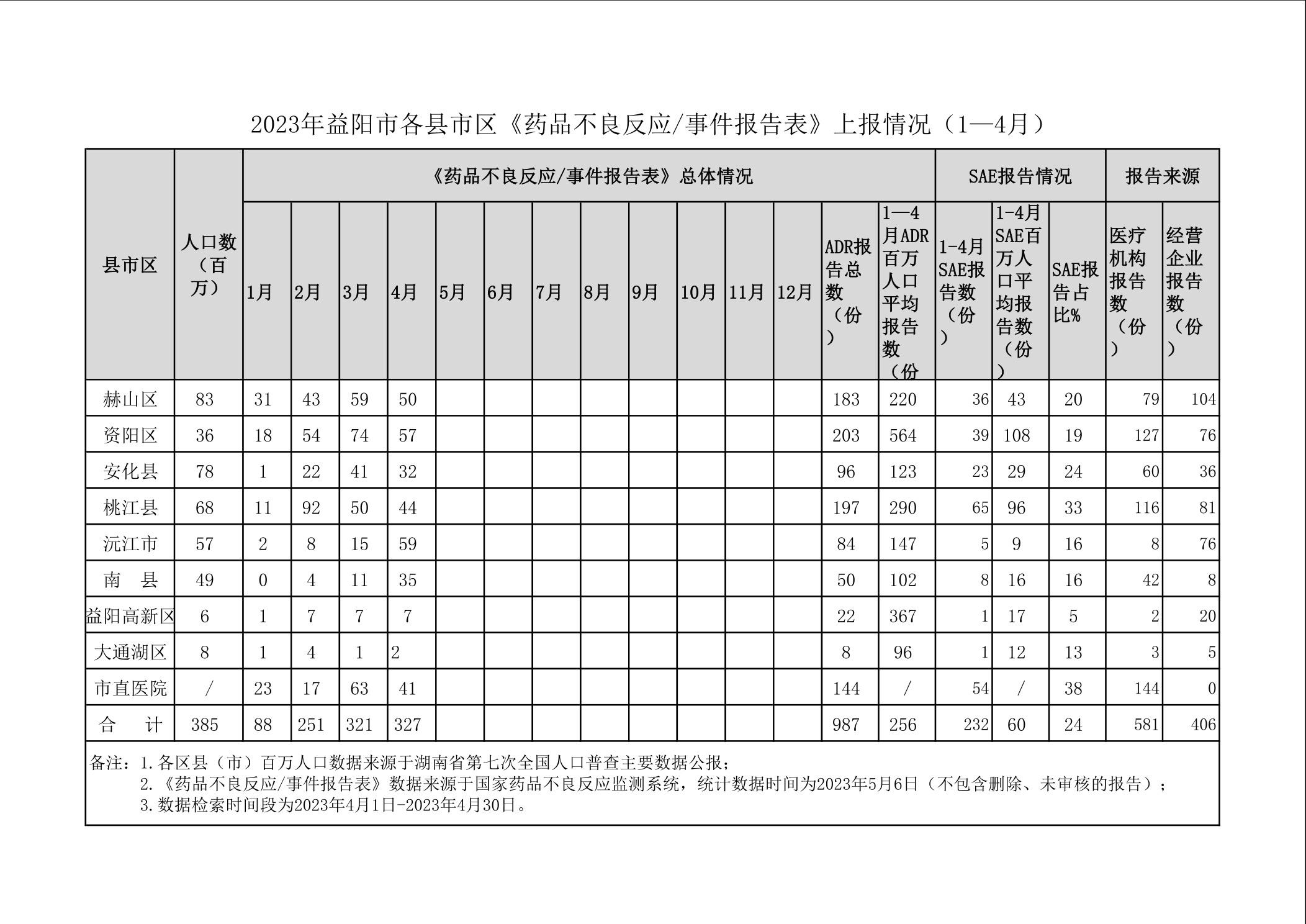 | 2023年益阳市各区县《药品不良反应事件报告表》上报情况(1—4月) |