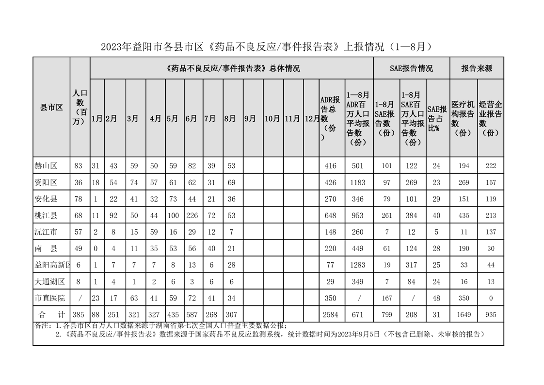 | 2023年益阳市各区县《药品不良反应事件报告表》上报情况(1—8月) |