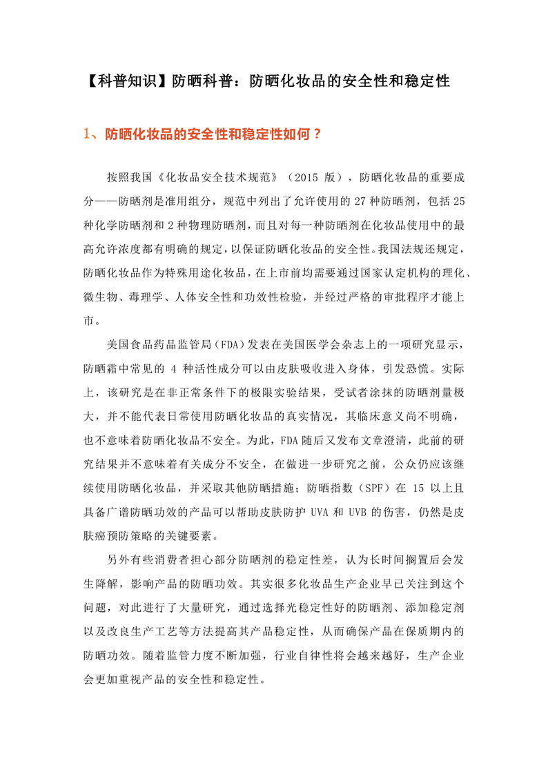 | 【科普知识】防晒科普:防晒化妆品的安全性和稳定性 |
