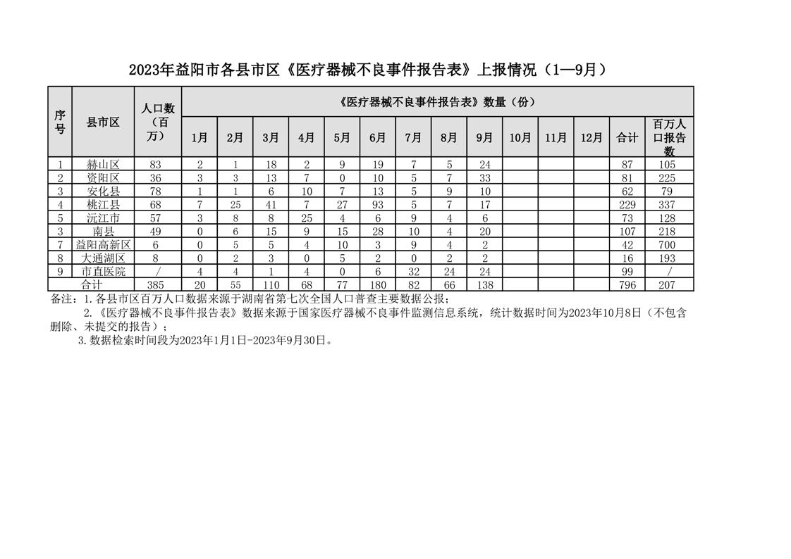 | 2023年益阳市各区县《医疗器械不良事件报告表》上报情况(1—9月) |