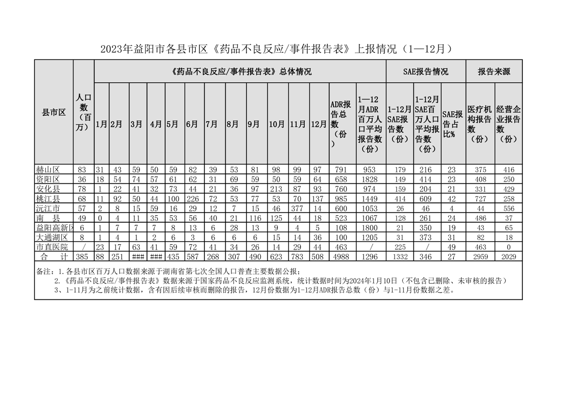 | 2023年益阳市各区县《药品不良反应事件报告表》上报情况(1—12月) |