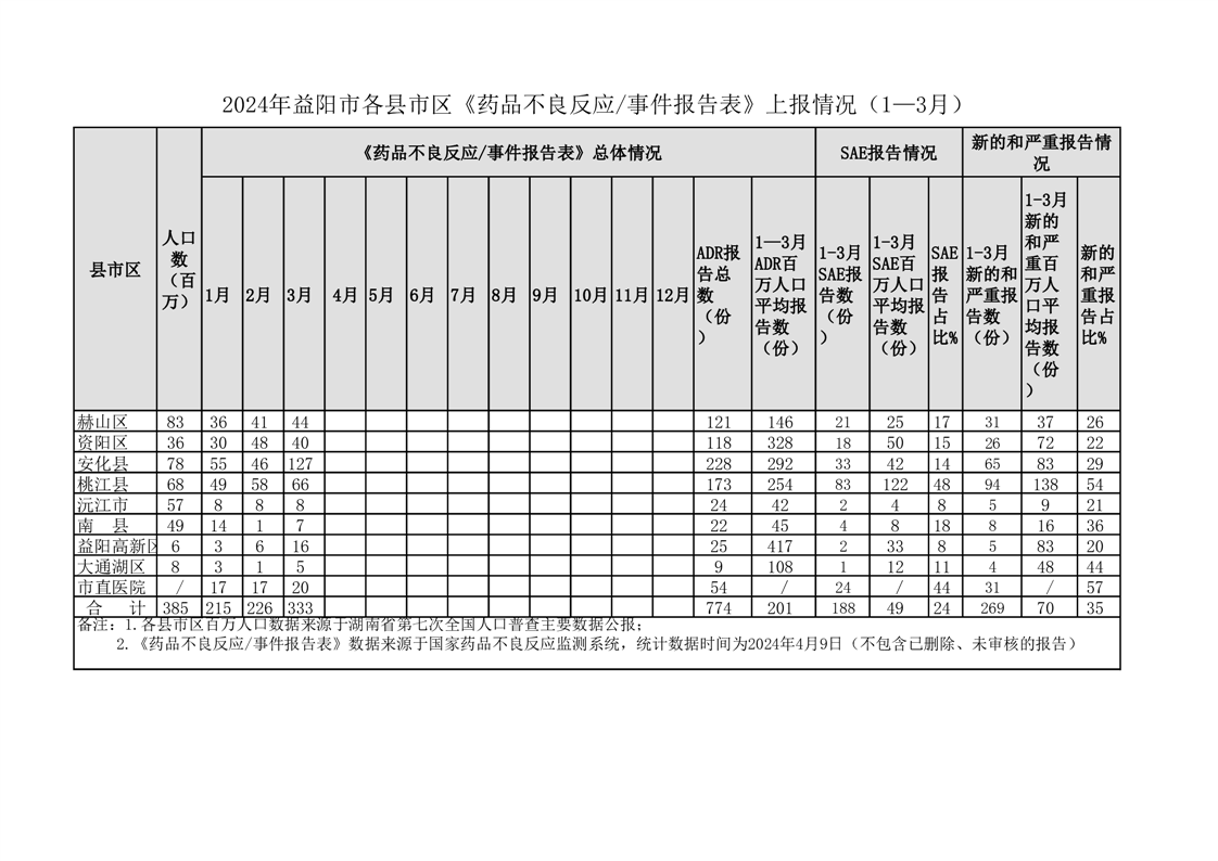 | 2024年益阳市各区县《药品不良反应事件报告表》上报情况(1—3月) |