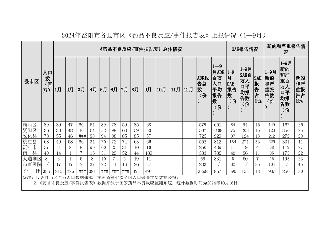 | 2024年益阳市各区县《药品不良反应事件报告表》上报情况(1—9月) |