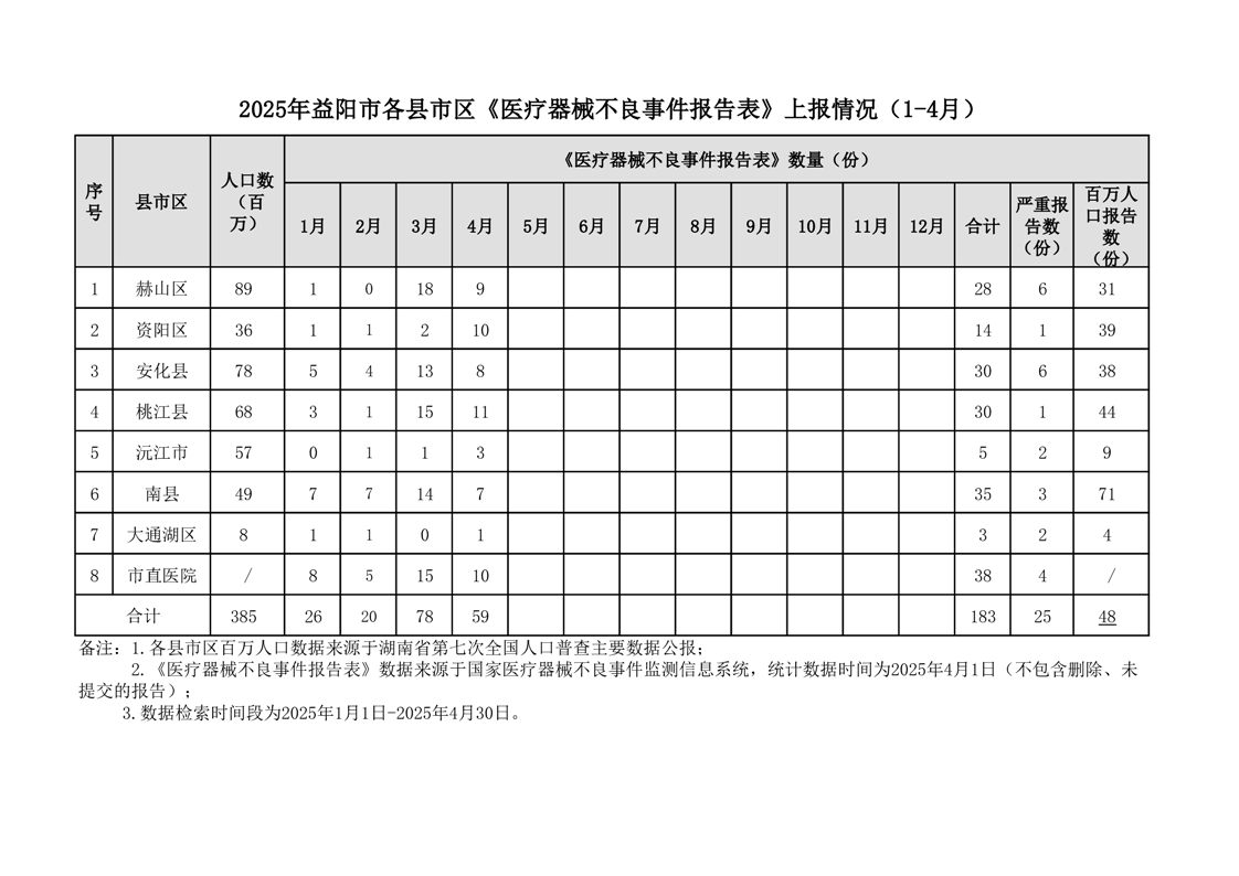 | 2025年益阳市各区县《医疗器械不良事件报告表》上报情况(1—4月) |
