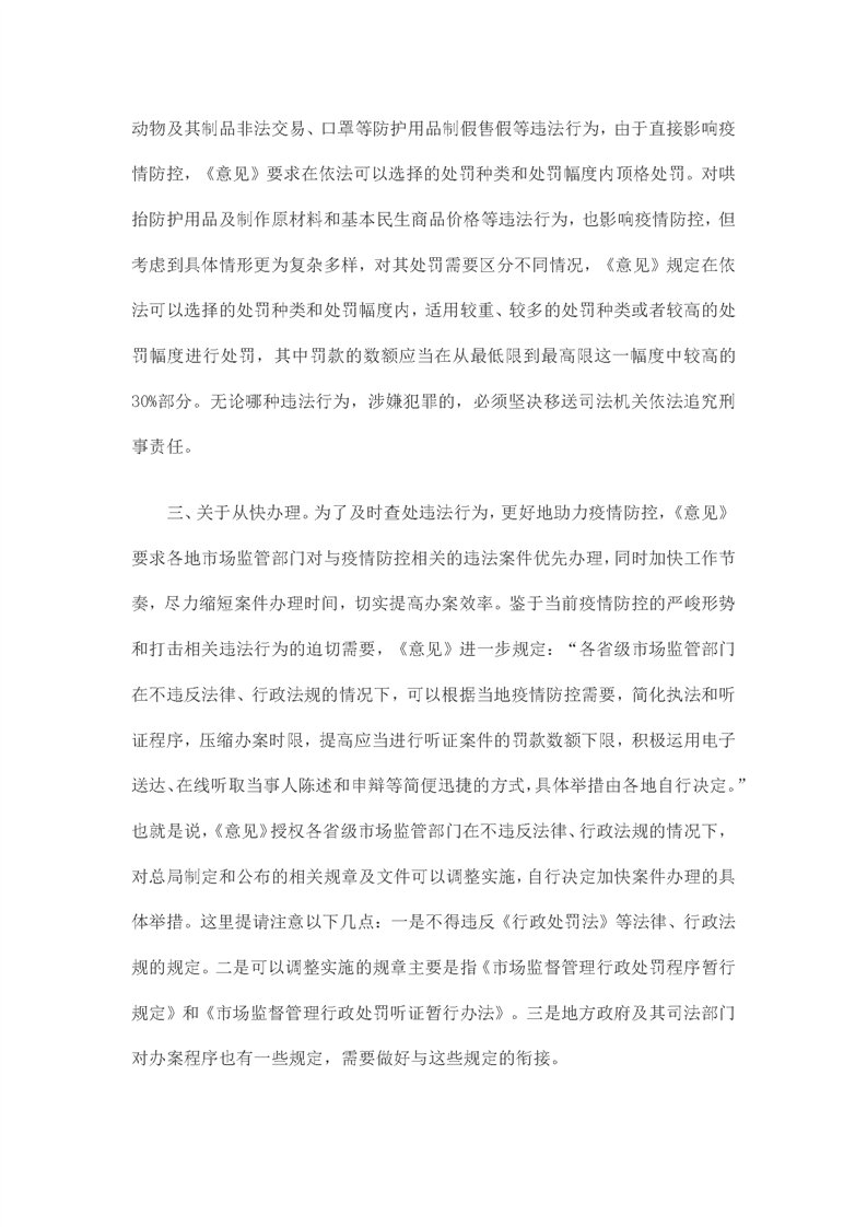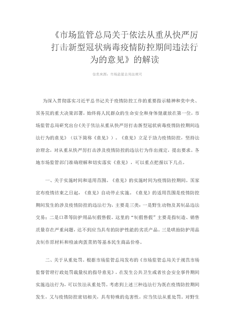 | 《市场监管总局关于依法从重从快严厉打击新型冠状病毒疫情防控期间违法行为的意见》的解读 |