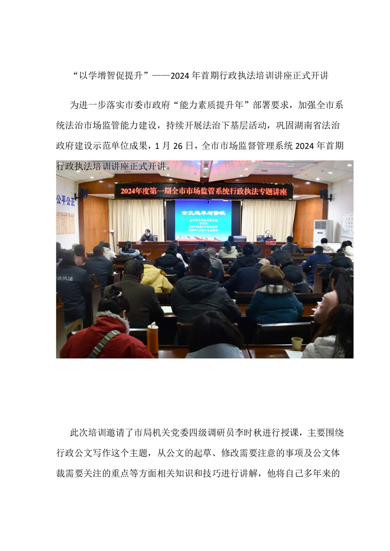 | “以学增智促提升”——2024年首期行政执法培训讲座正式开讲 |