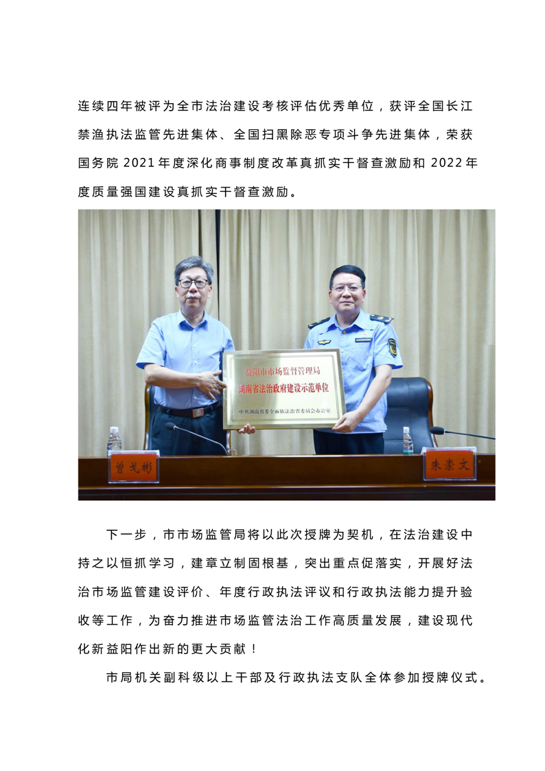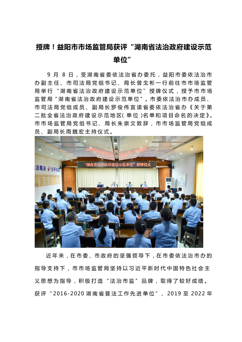 | 授牌!益阳市市场监管局获评“湖南省法治政府建设示范单位” |