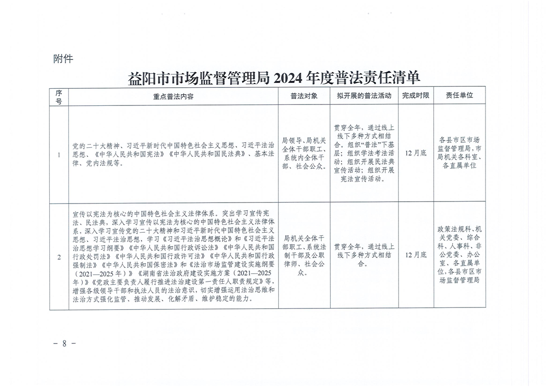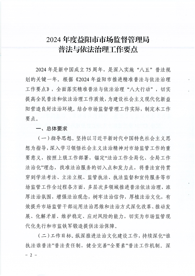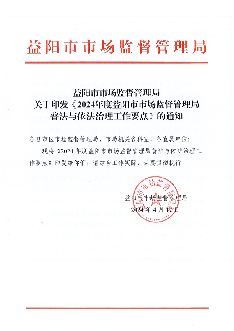 | 关于印发《2024年度益阳市市场监督管理局普法与依法治理工作要点》的通知 |
