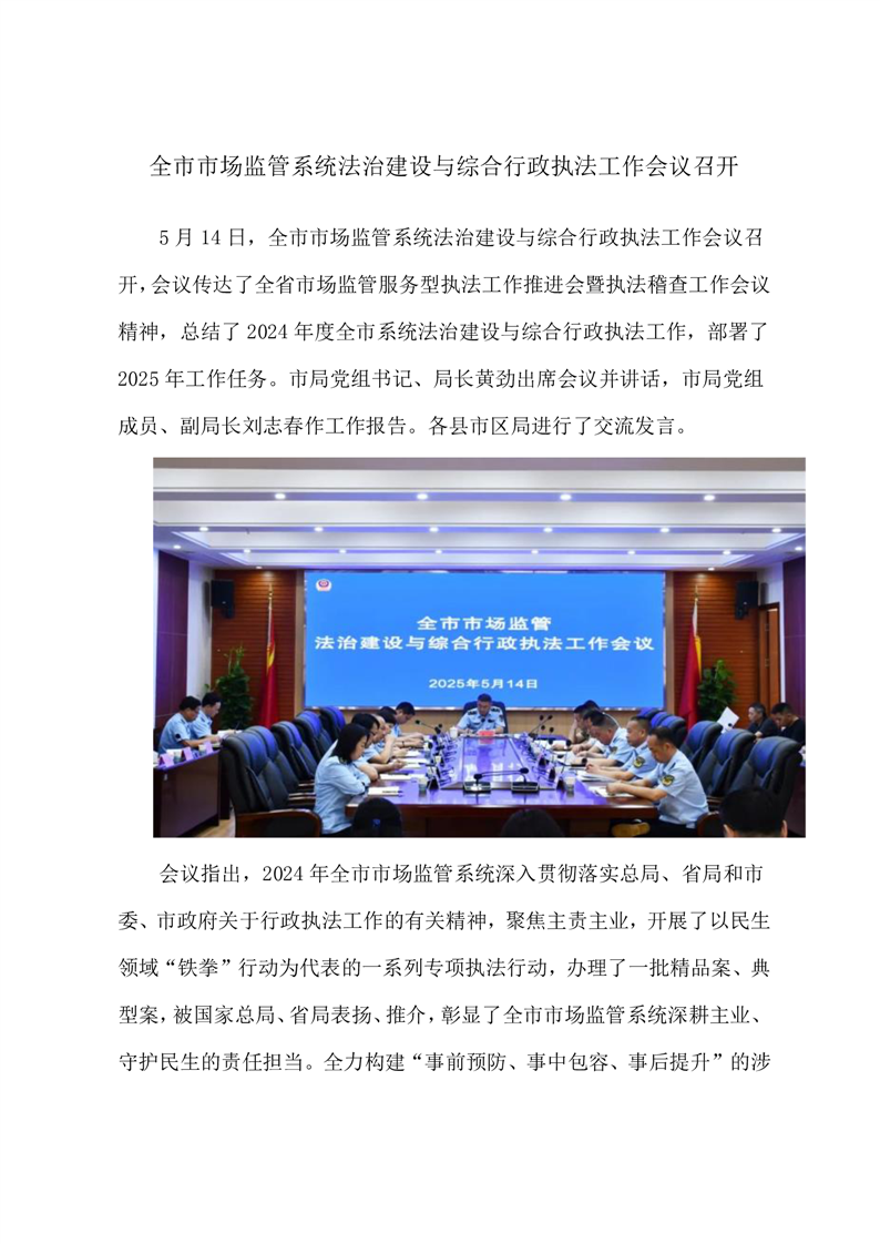| 全市市场监管系统法治建设与综合行政执法工作会议召开 |