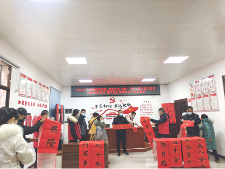 图1. 写春联书法文化活动现场 写春联活动结束后,曾毅辉详细询问了社区困难群体帮扶工作的开展情况和成效,以及今后的帮扶工作方向,并向10户生活困难群众送上慰问金,同时向他们致以节日的问候,鼓励他们积极乐观面对困难,在党和政府的帮助关怀下,一定能够渡过难关。