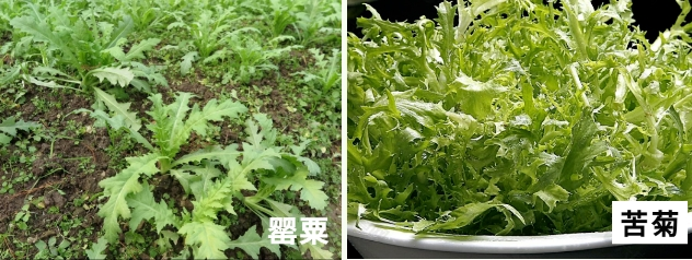 罂粟苗的叶子和茼蒿菜比较像,边缘都是锯齿状,但罂粟苗的叶子要比茼蒿菜短,并且罂粟苗的叶子均长在茎上,叶柄呈抱茎状,而茼蒿菜的叶柄(也就是我们说的叶“杆子”)又细又长。 罂粟VS苦菊