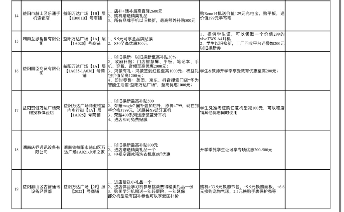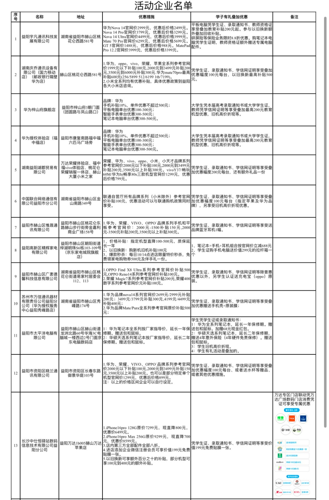 记者从益阳市商务局了解到,8月15日至10月10日,益阳将开展“潮电银城 智享暑期”促销活动。益阳市商务局组织部分数码产品销售企业、商家开展让利活动,热销数码产品(智能手机、平板电脑、智能手表等)设定暑期优惠价;设置“学子有礼”专区,学生凭学生证、录取通知书、学信网证明等有效证件再叠加优惠;消费者领取国补券后,可在商家优惠的基础上再进行国补。同时万达专区推出数码产品组合套餐,例如进店有礼、免费抽奖、门店联动等活动。