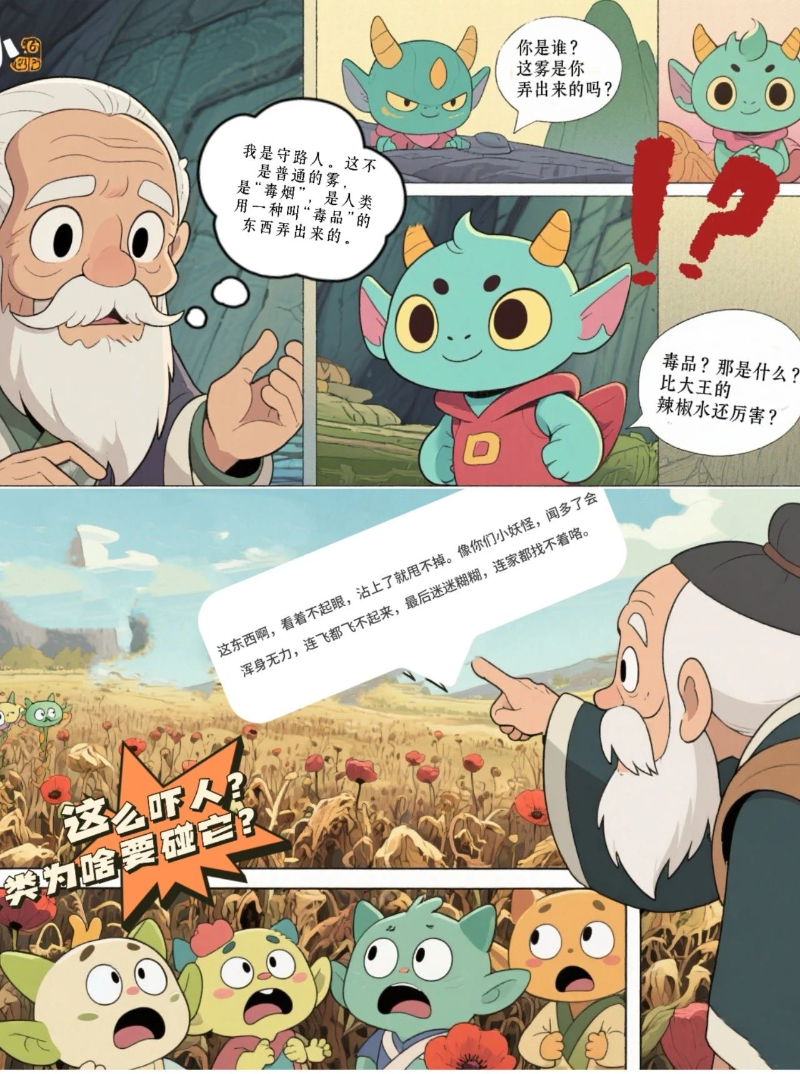 浪浪山小妖怪们取经途中遇上“毒雾” 跟着老者学会识毒避毒,还当起宣传员 把禁毒知识说给山林伙伴听。 天真又认真,这趟取经路,先学护己避毒!