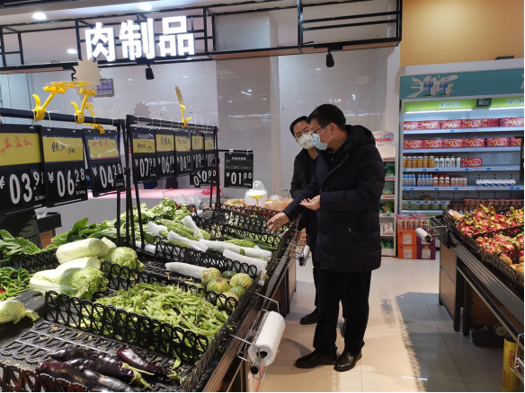 副县长伍亮在大型超市了解蔬菜的保供情况 |