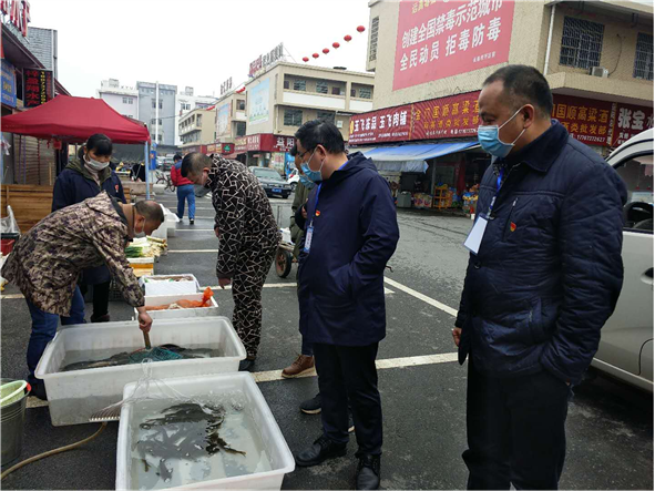 综合督查组组长颜建荣在红联大市场开展督查工作 4.内部监管的执纪者:“严管加厚爱,是做好工作的关键。” “今天有没有区商务局的工作人员到你们市场开展疫情防控指导与督促?”“你觉得他们的工作做得怎么样?”“对你们市场疫情防控过程中存在的问题,区商务局工作人员有没有督促及时整改?”“在开展工作过程中,他们有没有佩戴好口罩,配合市场管理方主动接受体温检测?”到每一个点位进行督查,是区商务局综合督查组组长颜建荣每天的日常工作之一。为加强疫情防控工作的内部监管,局里专门成立综合督查组,颜建荣勇挑重担。2月15日,已经连续工作半个月的他痛风犯了,脚痛得下不了地,但他不放心单位的疫情防控工作,生怕出什么纰漏,咬咬牙拖着蹒跚的腿硬是把所有的点巡查了一遍,直到看到所有的工作都按要求落实到位了才放心的去医院开了点药。综合督查组还承担着所有干职工的后勤保障任务,他每天总是把外出工作人员的口罩发放、预防中药熬制、食堂用餐等安排得妥妥当当,解决所有人的后顾之忧。“每天督查是为了把全局的疫情防控工作做好,这是严管。每天把后勤保障工作安排好是为了所有人更加安心的工作,这是厚爱。严管加厚爱,才是我们做好工作的关键。”