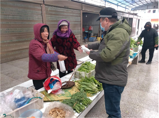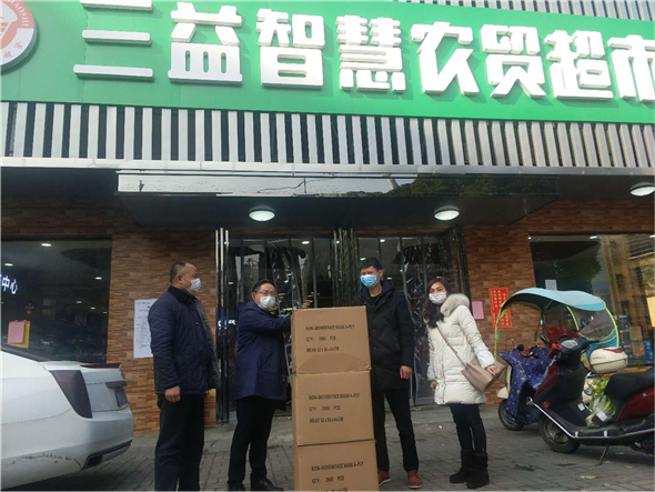 商务中心主任刘令为零担商贩免费发放口罩 3.奉献爱心的普通干部:“跟群众做朋友,多做服务工作。” “嗲嗲,这个口罩送给你,你把它戴上,这既是对你自己负责,也是对大家负责。”“王站长,听说你们这里没有消毒液了,我帮你们搞到的5公升84消毒液,一定要按照配比要求,将日常消毒落实到位。”在过鹿坪零散市场和张家塞乡下资加油站,商务中心主任刘令正在把筹措到的防控物质发放给有需要的人群。“疫情爆发以后,乡镇的防控物质极度匮乏,喊十句口号比不上发放一个口罩,我们下去做防控工作,一定要想方设法帮助他们解决困难,做好服务。”刘令说道。疫情爆发以来,他自筹资金近五千元,购买了一批口罩和消毒液,无偿提供给各乡镇市场商户和加油站,帮助他们解决眼前的实际困难。看到各个市场和加油站的疫情防控台账格式各异,长短不一,他又积极组织人员,将各种防控资料、防控指南及防控工作台账表格进行统一,编印《疫情防控宣传册》120册,发放给全区各市场、超市、加油站点,既加强了疫情防控知识宣传,又方便了各点位开展工作,受到了大家的一致称赞。“把人民群众当成好朋友,多为他们做服务工作,这才是落实好疫情防控的关键。”刘令说。