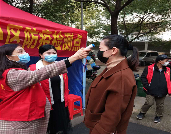 区商务局干部、党员志愿者曹琼敏在社区开展疫情防控工作 5.坚守一线的铁娘子:“先有国,后有家,这道理我懂!” 2月19日,这已经是局机关干部曹琼敏连续参加疫情防控工作的第25天了。大年初二结束休假,她就主动向局防控工作领导小组请缨,要求把自己安排在最偏远的乡镇开展工作。局领导问她原因,她说:“我年轻,身体好,家里有人做饭。”话虽平凡,但闻者动容。大家都知道,她是为了单位其他的同事,主动把最苦最累的活扛下来了。她每天都要深入到最偏远的新桥河、杨林坳,指导督促当地的乡镇、社区做好辖区内农贸市场的疫情防控工作。在她的辛勤工作和不懈努力下,所负责的龚家坪农贸市场、新桥河农贸市场、杨林坳零散市场“一日三专”到位了,宣传横幅挂上了,广播喇叭开响了,体温检测设起了,商户口罩戴上了......各项防控措施都得到了很好的落实。“国家国家,有国才有家,这个道理我懂。在疫情防控的关键时刻,没有什么好挑三拣四的,干就得了!”朴实无华的话语,展现的是资阳商务女兵的迷人风采。