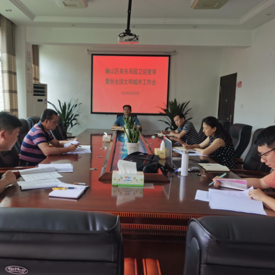 赫山区商务局自接到上级双创通知,高度重视,迅速行动。5月30日,党组书记、局长程明德主持召开国卫迎复检暨创全国文明城市工作班子扩大会议,全体班子成员和责任股室长参加,研究制定工作方案,落实开展准备工作。