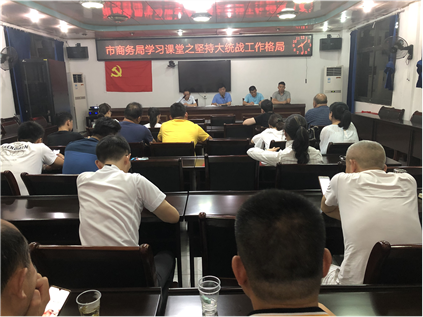 6月15日晚,市商务系统组织开展专题学习课堂,通过“学习强国”APP集中学习中央书记处书记、中央统战部部长尤权的《坚持大统战工作格局》。参加会议的有党组领导班子全体成员、机关在职党员干部、二级机构相关负责人、群众代表。党组书记、局长王建宏主持会议并讲话。