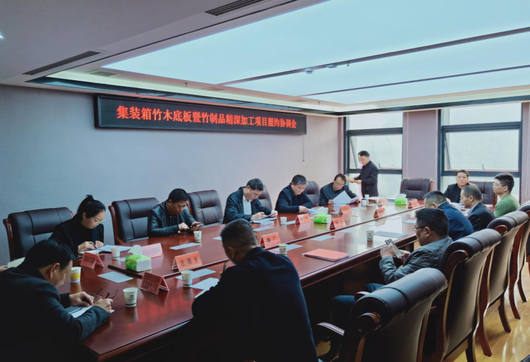 2月23日上午,在安化县商务局新办公楼会议室,副县长谭罗垠组织召开龙塘集装箱竹木底板暨竹制品精深加工项目履约协调会。会议由县商务局局长刘畅术主持,乙方安化县龙塘柏溪竹业有限责任公司总经理黄厂及投资合作企业长沙市村木贸易有限公司总经理胡兵一行出席协调会,县经开区、县自然资源局、县林业局、县科工局、市生态环境局安化分局、龙塘乡等相关单位主要负责人及分管领导参加。